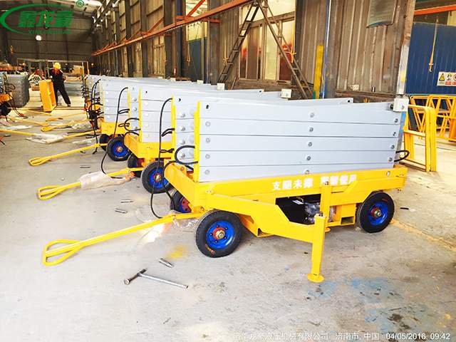 移動剪叉式升降平臺主要技術特點:臺面鋼板折彎、底架及剪叉結構山鋼定做高強度矩形管材; 標準冷彎槽做道軌,使用尼龍滑塊做導軌輪,接觸面大,升降平穩(wěn),晃動??;液壓油缸 內置防爆閥(防止油管斷裂,平臺失速下降),采用進口密封圈,經久耐用,不泄露;雙層鋼網高壓油管;升降機專用液壓泵站,加裝應急下降閥,平臺斷電可手動控制 下降,內置溢流閥,可防止上行運動時系統(tǒng)壓力過高,起到超載保護功能;充氣橡膠輪胎; 電路電器、接觸器羅列連接,加裝熱過載保護,缺相保護等安全保護功能;電動上、下電動控制,控制按鈕盒加裝急停按鈕,以保障財產及人身安全,各操作部分使用24V安全控制電壓;軸銷圓鋼配做,調質處理;拋丸、噴砂 除銹處理,除去鋼結構構件表面的銹蝕及焊接飛濺,能使鋼構件表面產生一定程度的凹凸不平的效果,增大粉末的附著力;使用靜電粉末噴涂;涂層外觀質量優(yōu)異,附著力及機械強度強,色澤亮度高,經久不褪色。