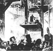 1853年紐約世博會奧迪斯當(dāng)眾表演砍斷升降機纜繩