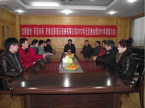 龍騰盛世,豪邁未來,濟(jì)南龍豪液壓機(jī)械設(shè)備有限公司于2011年12月31日于公司總部召開了2011年表彰大會(huì),同時(shí)也為慶祝2012年元旦晚會(huì),首先,公司負(fù)責(zé)人張總及廠領(lǐng)導(dǎo)的蒞臨公司在年底召開的年終總結(jié)大會(huì),宏觀的總結(jié)了在過去的2011年的工作、業(yè)績(jī)情況以及在未來的2012年里的奮斗目標(biāo)和公司的發(fā)展方向。公司銷售部負(fù)責(zé)人也就在2011年的銷售狀況和工作內(nèi)容進(jìn)行了詳細(xì)的分析和具體的數(shù)據(jù)統(tǒng)計(jì),也為新一年的銷售情況制定目標(biāo)和銷售項(xiàng)目;廠里技術(shù)部負(fù)責(zé)人總結(jié)現(xiàn)有的技術(shù)基礎(chǔ),為明年的技術(shù)創(chuàng)新和改革而努力;生產(chǎn)部負(fù)責(zé)人也進(jìn)行了總結(jié)性的發(fā)言,積極配合銷售部的工作,做銷售部堅(jiān)實(shí)的后盾。此外,公司領(lǐng)導(dǎo)也對(duì)優(yōu)秀員工進(jìn)行表彰,激勵(lì)員工為下一年的工作繼續(xù)努力,更創(chuàng)輝煌!